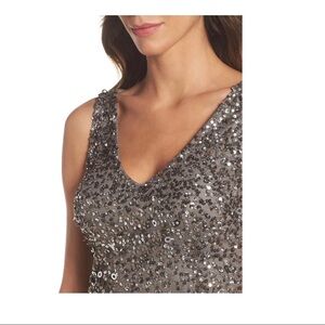 NWT Adrianna Papell V-Neck Sequin A-Line Gown in Lead [SZ 12 ]