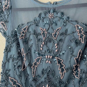 NWT Adrianna Papell Women's Beaded Bodice Formal Maxi Dress with GGT Skirt Blue