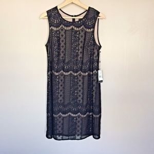 NWT Adrianna Papell Women's Black Lace Shift Dress
