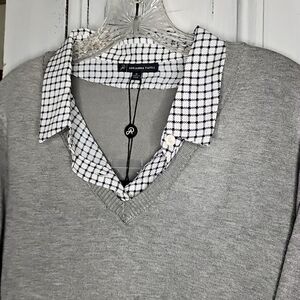 NWT | Adrianna Papell | Womens Gray V-neck Twofer Sweater with black & white Faux Blouse | Size XL