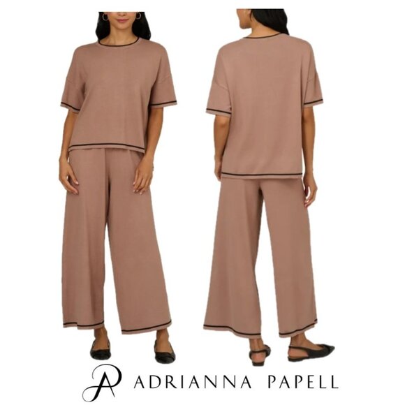 NWT Adrianna Papell Women's Lightweight Sweater Set, Light Brown