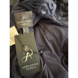 NWT Adrianna Papell Women's Seqin and Tulle Midnight Blue Sz 6 Gown