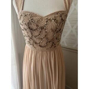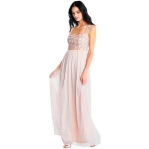 NWT Adrianna Papell Women’s Size 4 Scallop Beaded Sweetheart V Neck Chiffon Gown