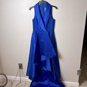 NWT Adrianna Papell high low tuxedo satin gown in Ultra Blue Royal Cobalt, 4