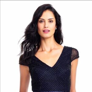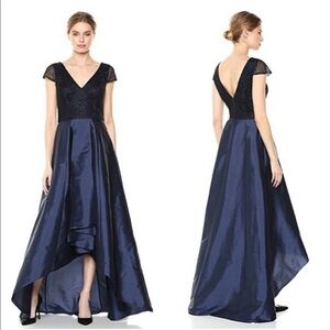NWT Adrianna Papell short sleeve high low ball gown beaded bodice