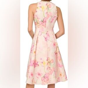 NWT Adrianna Pappell Halter Jacquard Dress Women’s Size 16 Pink Floral Print