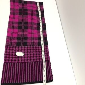 - pink and black plaid pattern-- checkered pattern on back of scarf