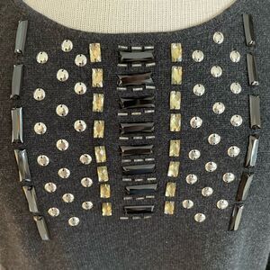 Love this stylish sweater top by Adrienne Vittadini featuring a large beaded design on the front. It measures 22 inches armpit to armpit laying flat and 31 inches in length from shoulder to hem.