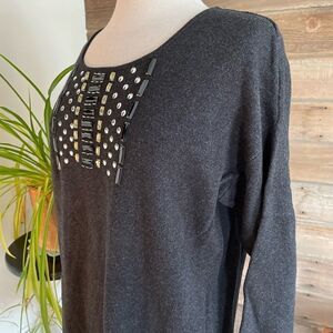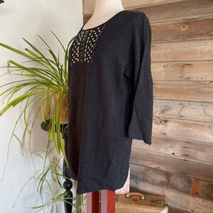 NWT Adrienne Vittadini Grey Wool Blend Sweater Top Size L