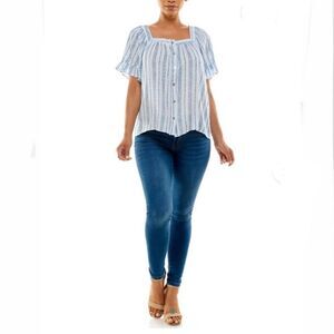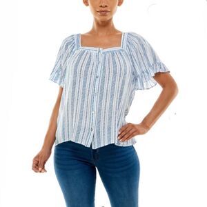 NWT Adrienne Vittadini Short Sleeve Square Neck Button Front Top With Ruffles