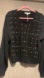 Chic black sweater adorned with pearl accents. Perfect for a stylish look.