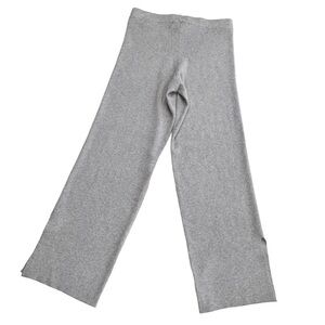Adyson Parker gray ribbed sweater-knit pull-on loungewear pants. So soft, cozy, and comfortable; perfect for leisure, lounging, and travel! Wide elastic waistband. High waist. Split ankle, side-seam slits. Poly/rayon/nylon blend. Machine wash. Brand new with tags attached. No flaws.