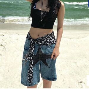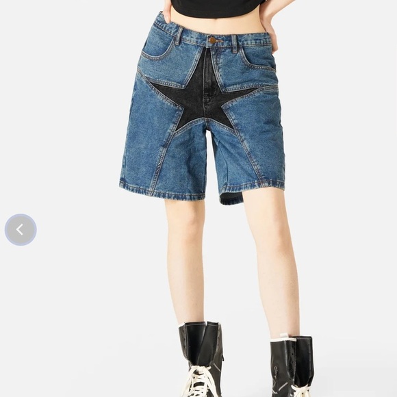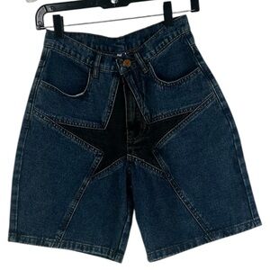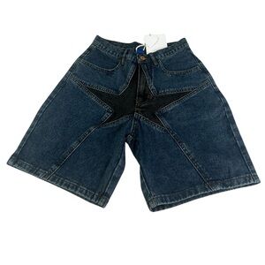 NWT Aelfric Eden Black Star Blue Denim Jeans Jorts Shorts Streetwear Size 26/2