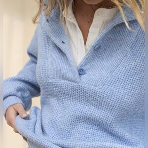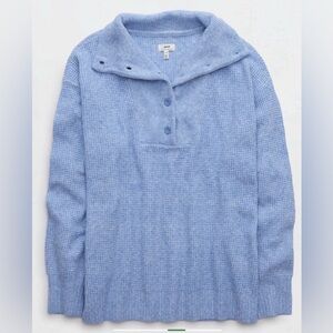 NWT Aerie CozyUp Waffle Button Sweater Blue Size XL