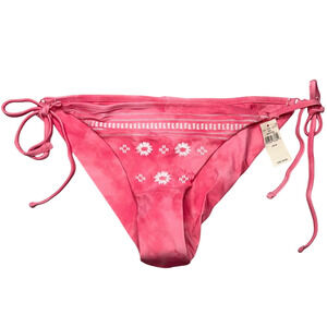 NWT Aerie Daisy Embroidered Tie Side Cheeky Bikini Bottom M Pink Swim