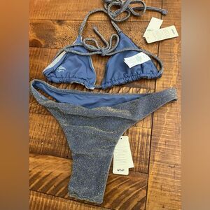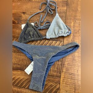 NWT Aerie FULL SET Sparkle String Triangle Top + Cheekiest Bottom in Blue - XS