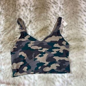 NWT Aerie Green and Brown Camouflage Sports Bra with Lace-Up Back