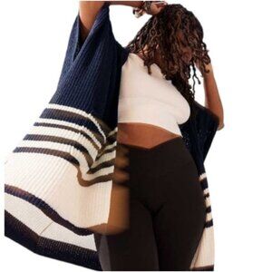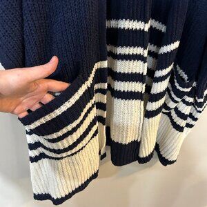NWT Aerie Navy Blue White Oversized Long Heavy Knit Cardigan Size X-Small Small