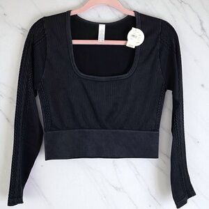 NWT Aerie OFFLINE Seamless Cable Square Neck Top Long Sleeve Cropped Gray XL