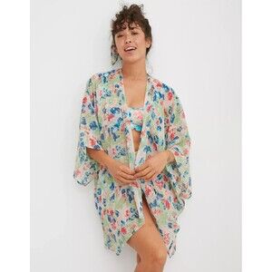 NWT Aerie OS Chiffon Cape Slumber Party Kimono Colorful Open Flowy Short Sleeve