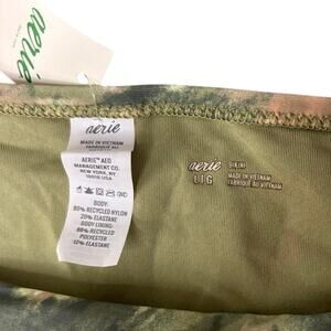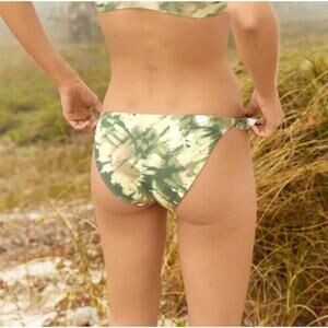 Step into beach days with ease in these Aerie bikini bottoms, designed with a nature-inspired olive green tie-dye print and playful ruffle sides. The low-rise cut adds a flattering, laid-back vibe while offering just the right amount of coverage. Crafted from an eco-friendly recycled fabric blend, they’re lightweight, lined, and perfect for vacations, pool lounging, or mixing and matching with your favorite bikini tops.