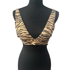 NWT! Aerie Pique Triangle Bikini Top Brown Black Animal Print - Size Medium