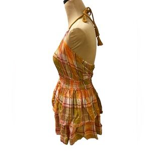 NWT Aerie Plaid Ruffle Halter Mini Dress Size Small Spring Plaid with Gold Dots.