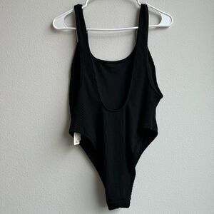 NWT Aerie Size Large Crinkle Cheeky Coverage One Piece Swimsuit Black Scoop Back