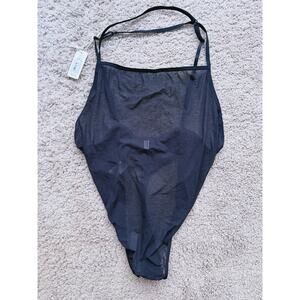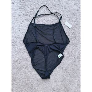 NWT Aerie Smoothiez Black Sheer Mesh Bodysuit Thong One Piece Medium Layer Goth