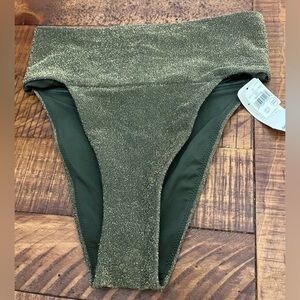 NWT Aerie Sparkle Banded High Waist High Cut Cheeky Bottom in Festive Olive - S