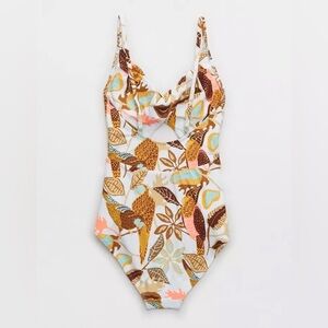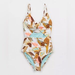 NWT Aerie Tropical Floral Print One Piece Swimsuit Cut Out Size Medium