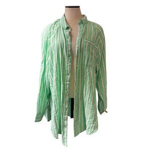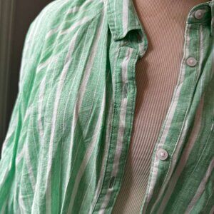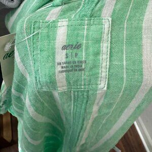 NWT Aerie Womens Pool To Party Linen Blend Cover Up Green White Stripe Size S