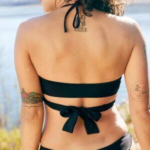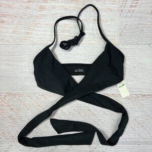 Aerie swimwear bikini top wrap halter tie front black XXS small minimalist adjustable