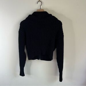 NWT Aerie Black Cowl Neck Cropped Sweater Jacket with Ribbed Knit size Small