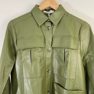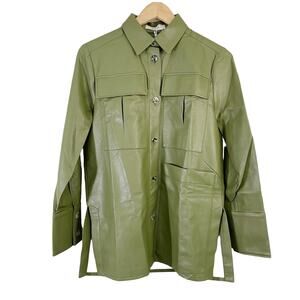 NWT Aeron Women's Blanche Faux Leather Shirt Jacket Moss Size 32 or XXS Colorful