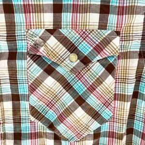 This is a new men's small Aeropostale button-up shirt in blue plaid cotton. It has long sleeves, a collared neckline with button-down style, and a regular fit. The shirt is made of breathable woven fabric, suitable for all seasons.
