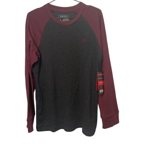 NWT Aeropostale Mens Long Sleeve Raglan Tee Burgundy & Charcoal Size L Comfort L