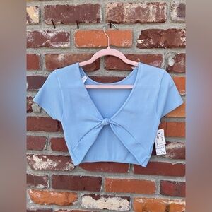 Chic ribbed crop top in sky blue. Perfect for casual outings.