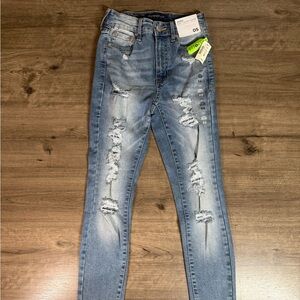 NWT Aeropostale Women’s Super High Rise Denim Jegging Jeans Distressed Premium Seriously Stretchy (0S)
