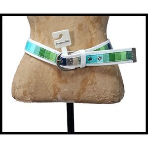 NWT Aeropostale Woven Block Plaid Belt Silver Metal Buckle Grommet Tip Large NEW
