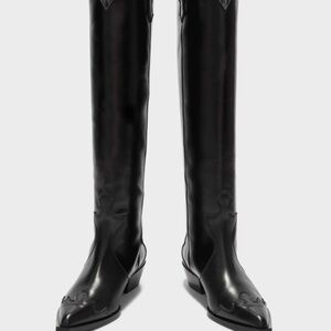 NWT Aeyde Aruna Tall Cowboy Boots Black Leather Size 41 Size 11