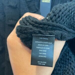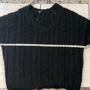 Long and oversized with impressive statement sleeves, this ultrasoft sweater knit with classic cable stitches layers easily and looks as great as it feels. NWT