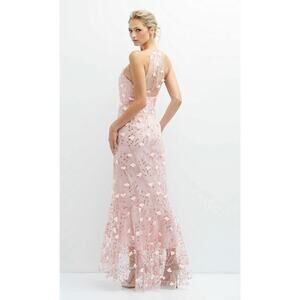NWT! After Six 3137 Sheer Halter Neck 3D Rose Floral Dress High-Low Hem 6