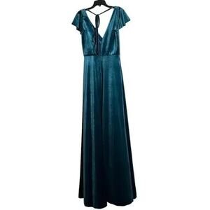 NWT After Six Lux Velvet Flutter Sleeve V Neck Maxi Dress Pockets 6 Dutch Blue