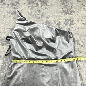 NWT After Six One Shoulder Spaghetti Strap Velvet Maxi Dress Gown Caviar Gray 8
