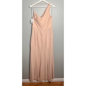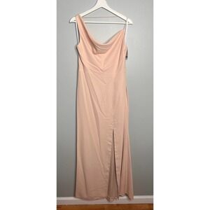 NWT After Six One Shoulder With Strap Cowl-Neck Crepe Maxi Dress Cameo Size 12