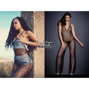 Elegant and sexy black sequined fishnet jumpsuit. Features a sheer design. Perfect for a bold look. Unfortunately it’s too big for me.