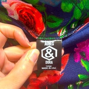 Elegant floral skirt in navy with vibrant red and pink accents. Perfect for any occasion. Agnes & Dora New with tags. Made in the USA
