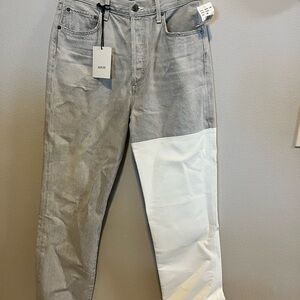 Stylish Agolde jeans with a modern gray and white design. Perfect for casual wear. Made with vegan leather.
