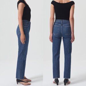 NWT Agolde High Rise Stovepipe Denim Jeans In Aspire Blue Low Stretch Size 29